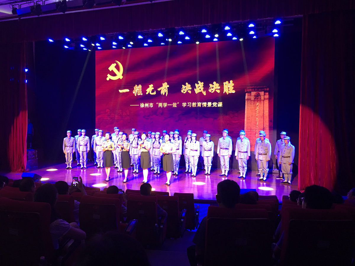 “一往无前、决战决胜”情景党课改变传统党课的固有模式,以宣传“淮海战役精神”为主题,通过乐、舞、颂、剧等多种艺术形式,综合运用声、光、电等现代技术手段,讲述了陈洁、李凤兰、孔金胜以及幸存将士、拥军百姓等人的故事,生动再现淮海战役的伟大场景和共产党员的英勇事迹。一首首激昂的歌曲,一个个细腻动人的故事,潜移默化地将党员带入特定情景中,使党员们深刻感受到战役的残酷与艰辛,使大家在思想上产生了共鸣。党课进行时,党员们的掌声一次次响起,泪光一次次闪烁,大家都被这种新颖的党课形式深深吸引。