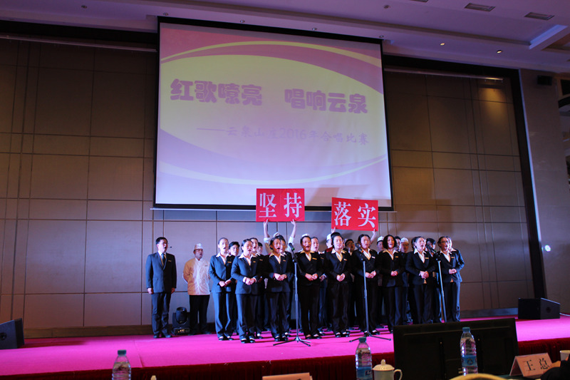 为深入践行“两学一做”学习教育活动,激发员工爱国主义情怀,培养社会主义核心价值观,11月16日下午,云泉山庄举办了“红歌嘹亮,唱响云泉”合唱比赛。